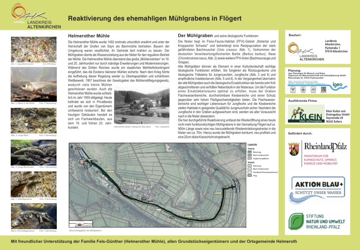 Die geplante Maßnahme zur Reaktivierung des Mühlgrabens im Ortsteil Flögert wird ab Mittwoch, den 06. August beginnen. Die Dauer der Baumaßnahme wird auf etwa 10 Wochen geschätzt. Von Seiten der Kreisverwaltung wird um Verständnis für den aufkommenden Baustellenverkehr gebeten. Bei Rückfragen stehen Ihnen die Mitarbeiter der Kreisverwaltung unter 02681-81 -2658 oder -2661 zur Verfügung.